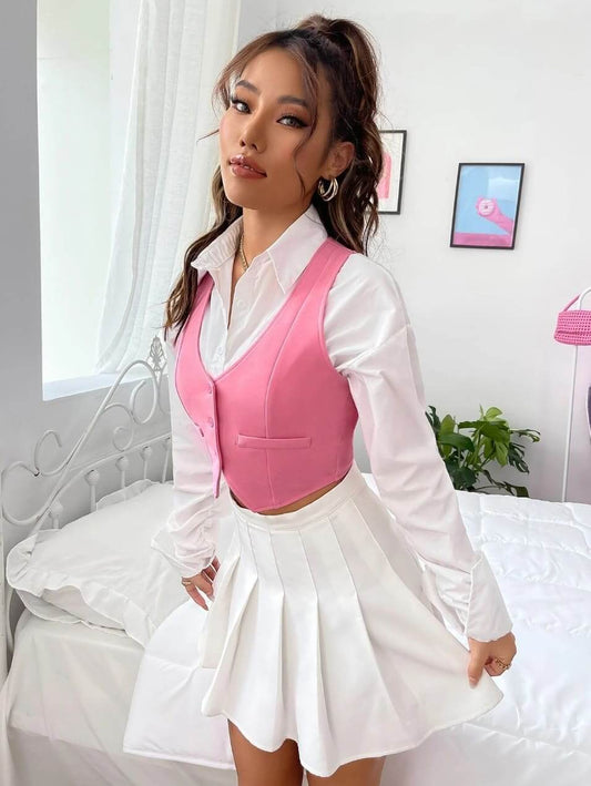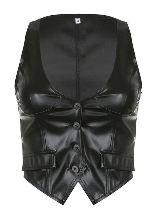 Colete Rock Curto 3 Botões Acinturado Cotton