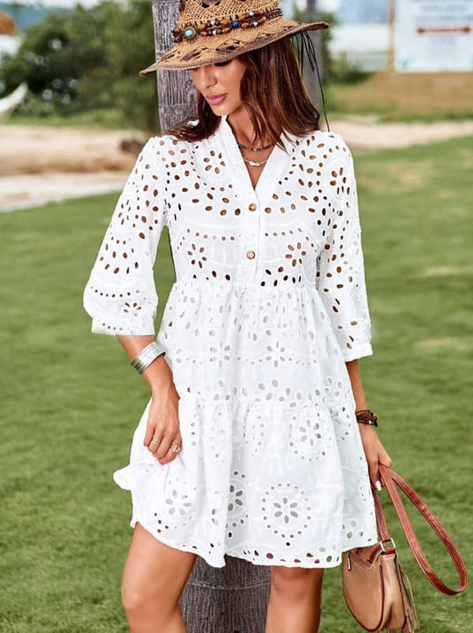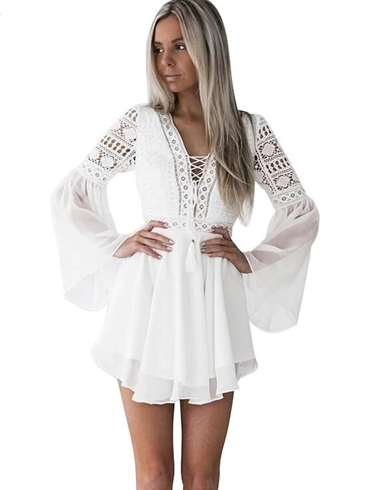Vestido de Festa Curto c/ Renda Decote Trançado Flare