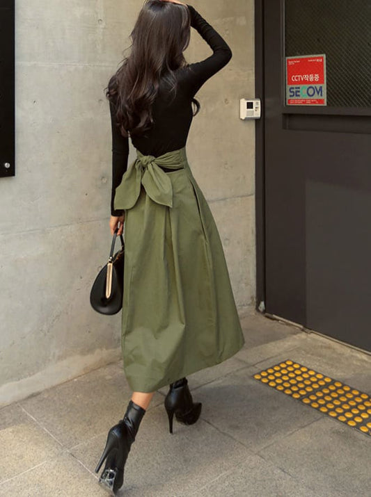 PromoçãoSaia Longa Rodada Camadas Fenda