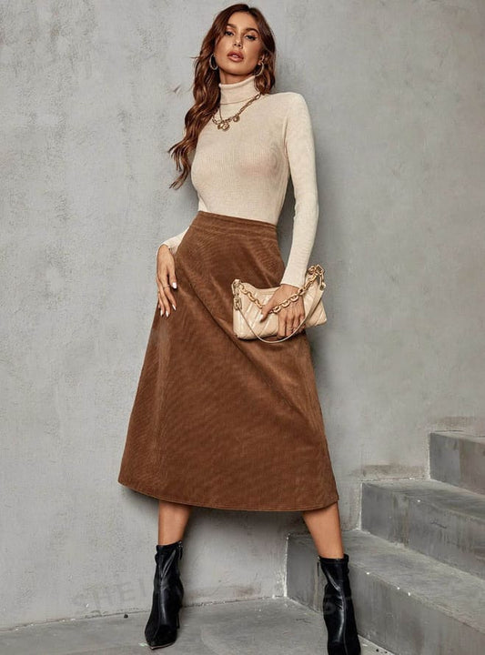 EsgotadoSaia Midi Veludo Cotelê Caramelo