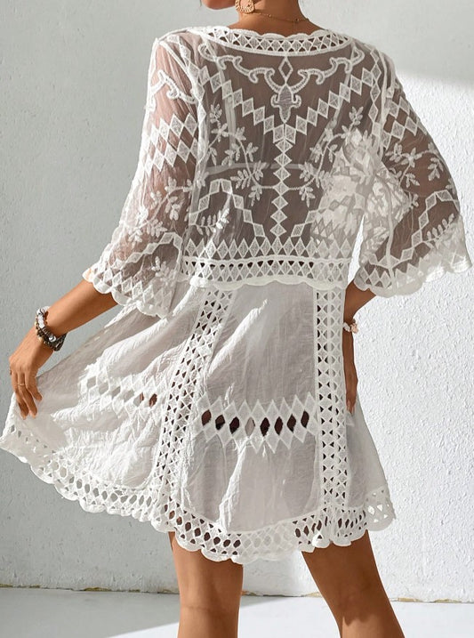 Saída de Praia Longa Branca c/Renda Manga Flare