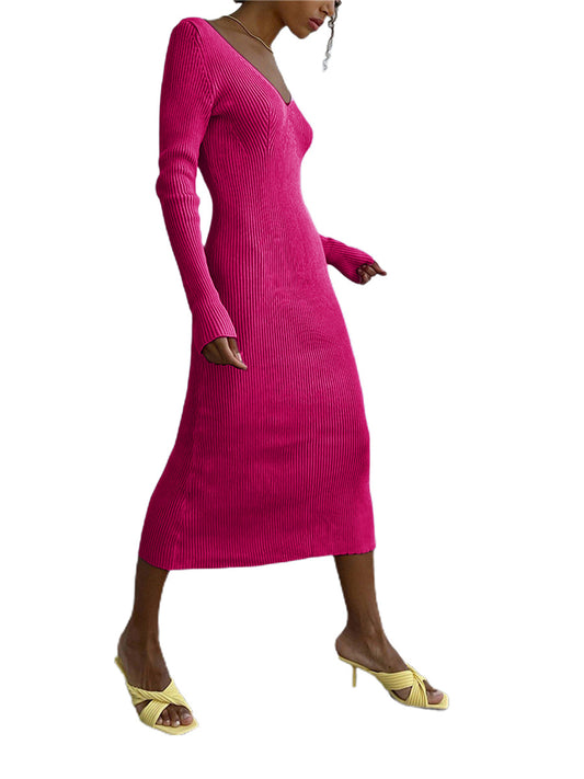Vestido Tubinho Tricot Decote V Midi Inverno
