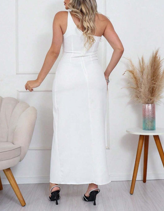 Vestido de Festa Tubinho Longo Fenda Um Ombro