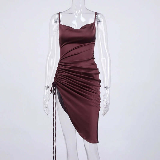 Vestido de Festa de Cetim Midi Fenda c/Amarração