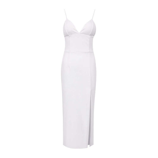 Vestido de Festa Midi Tubinho Fenda Decote Profundo Alcinha