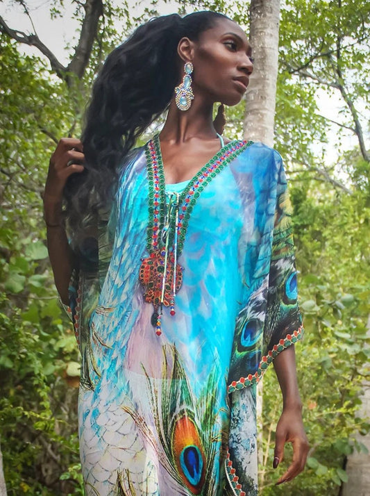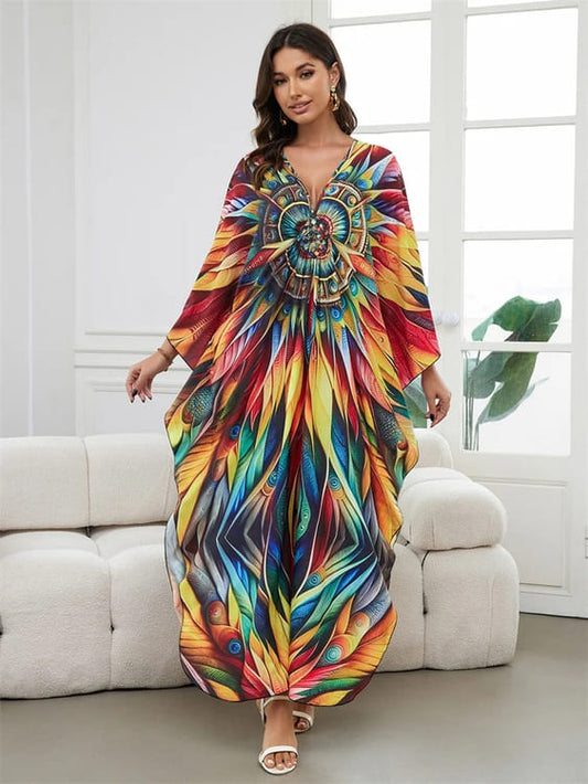 Vestido Longo Estampa Vibrante Mandala Túnica