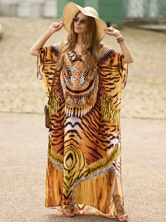 Vestido Longo Ciganinha Bordado Solto Túnica Plus Size