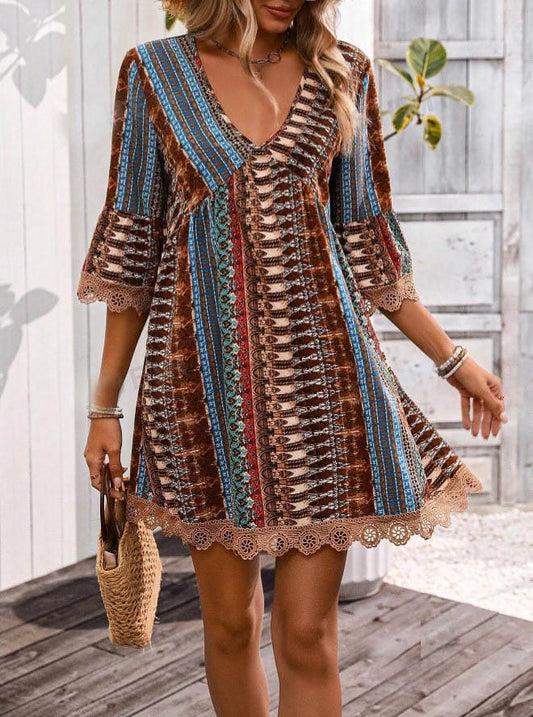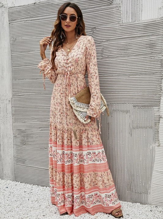 Vestido Floral Midi Romance Decotado Manga Curta Princesa