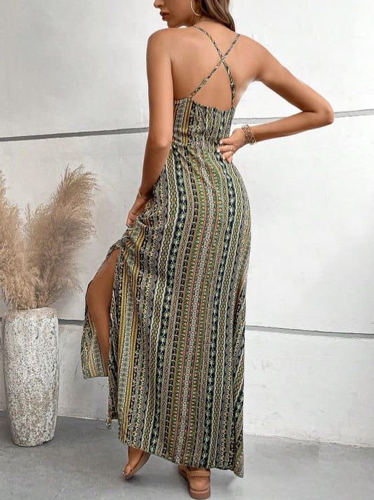Vestido Longo Boho Étnico Estampado Alcinha