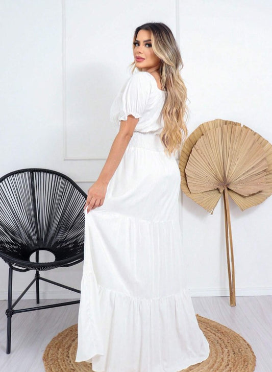 Vestido Longo Decote V Nozinho Vazado Verão