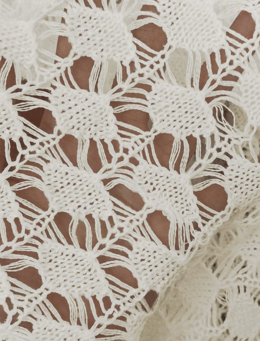 Sofisticada saída de praia curta em renda crochê, de manga longa flare. Modelo estilo tomara que caia com transparências do crochê trazem muita feminilidade ao look praiano. Possui cordão na cintura. Detalhes com desenhos diferentes em cima e em baixo trazem estilo diferenciado à saída de praia.