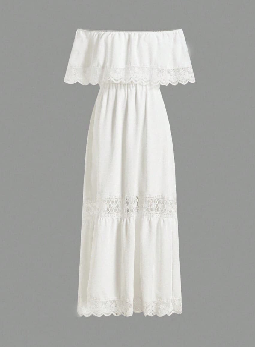 Lindo vestido longo com renda. Feito no estilo boho, essa peça maravilhosa conta com corte tomara que caia, ou ciganinha, deixando os ombros a mostra. Possui babado cobrindo o busto, cintura com elástico e saia rodada com detalhes em renda. O vestido é feito em tecido leve, texturizado, que não amassa com facilidade. Ele é perfeito para casamento no civil ou na praia, festas de final de ano, passeios e viagens.