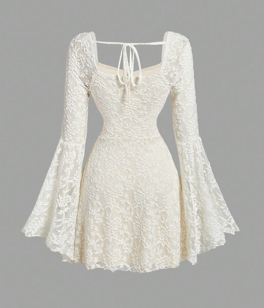 Vestido de Festa Branco de Renda Costas Nuas Manga Transparente