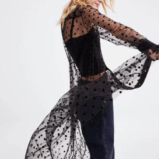 Vestido Curto Manga Flare Decotado Saída de Praia