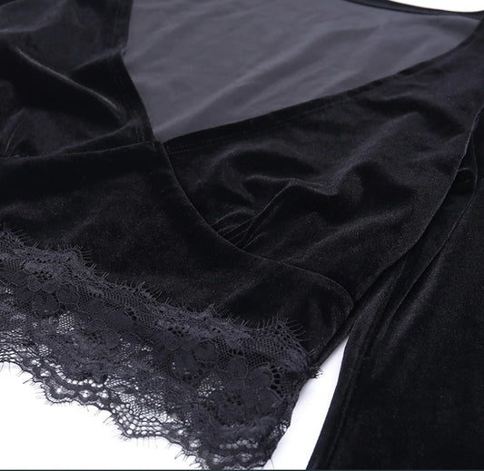 Cropped Gótico de Veludo c/ Renda Manga Flare
