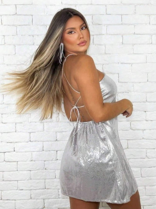 Vestido de Festa Curto de Paetês Costas Nuas