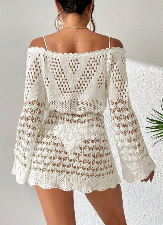 Saída de Praia Longa Branca c/Renda Manga Flare