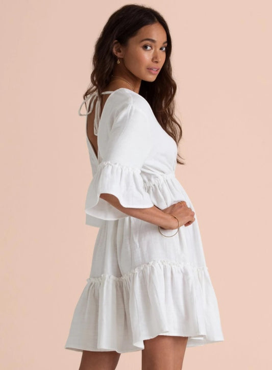 Vestido Curto Manga Flare Decotado Saída de Praia