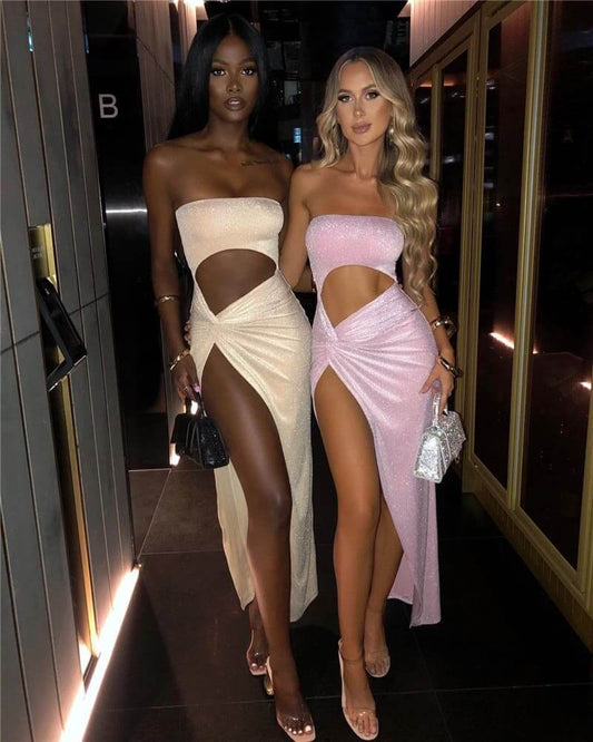 Vestido de Praia Longo Vazado Recorte Cut-out Fenda Sensual