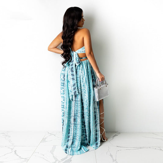 Vestido Longo Estampado Vazado Fenda Verão