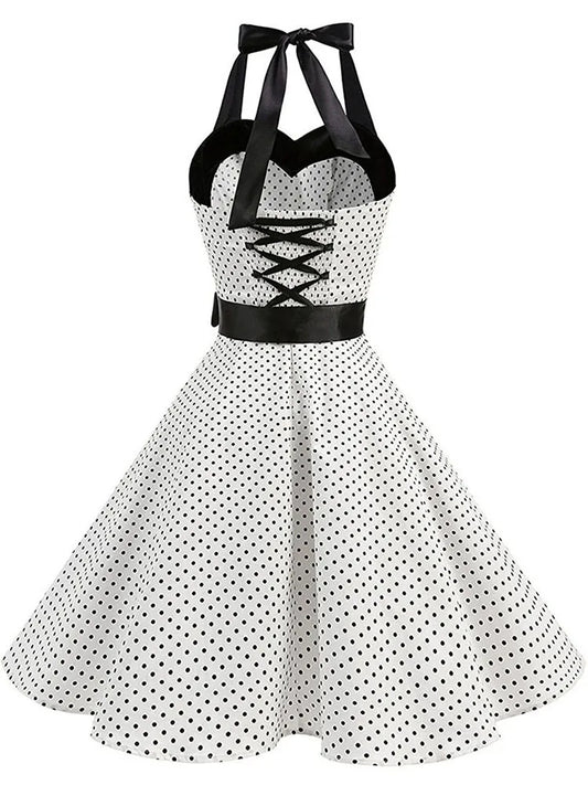Vestido Pin Up Midi Bolinha Rodado Alça de Amarrar