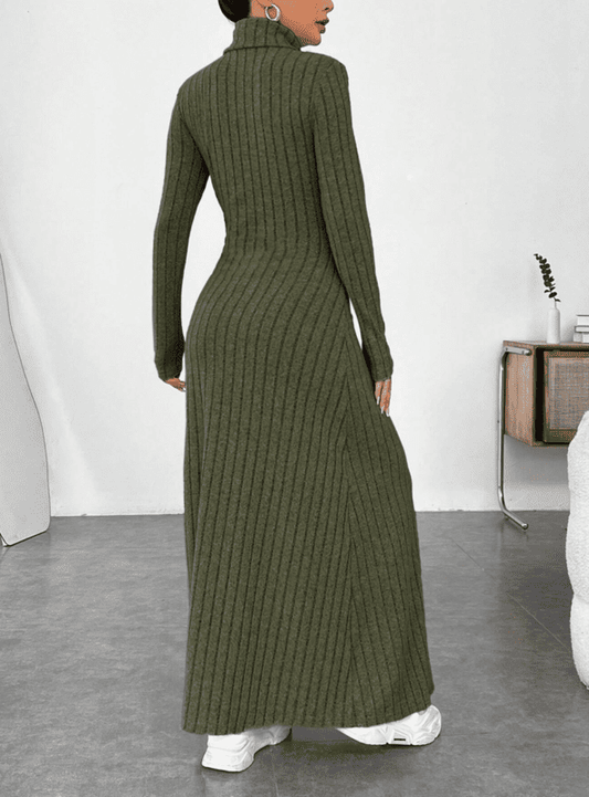 Vestido Midi Tricot Manga Longa Gola Alta