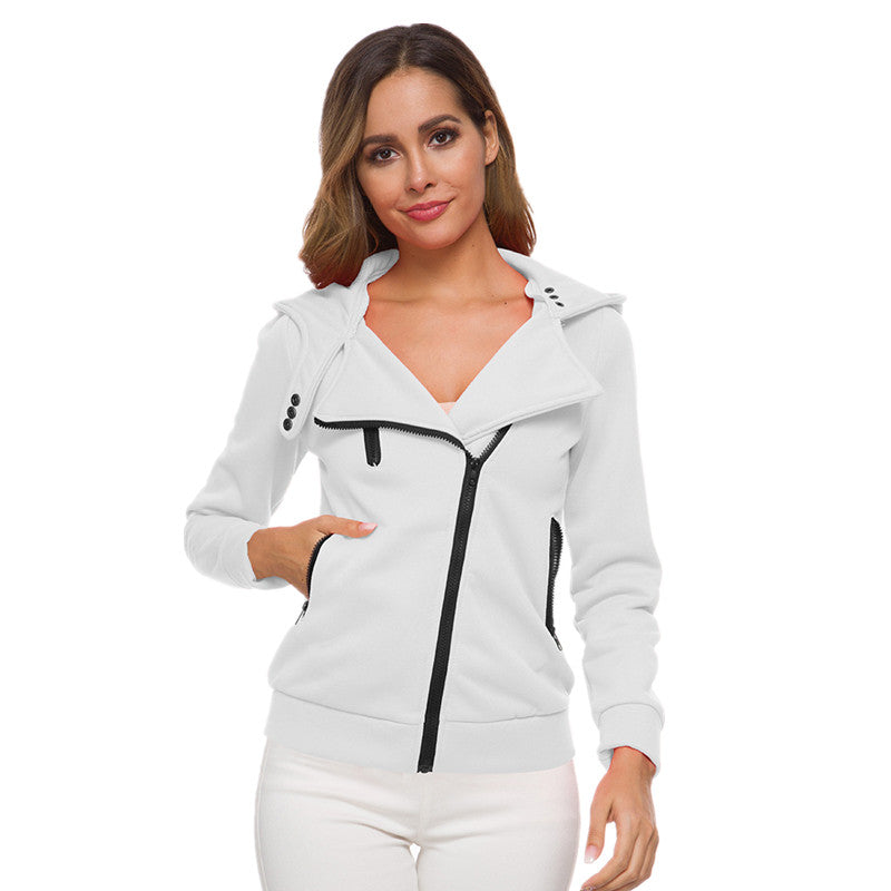 Lindo casaco de Moletom com gola inglesa ampla, capuz e zíper frontal levemente inclinado, que traz um charme especial a peça. Vários detalhes, como bolsos e botões de pressão. Nas cores sólidas branco, preto, cinza, cinza escuro, vermelho, azul turquesa.