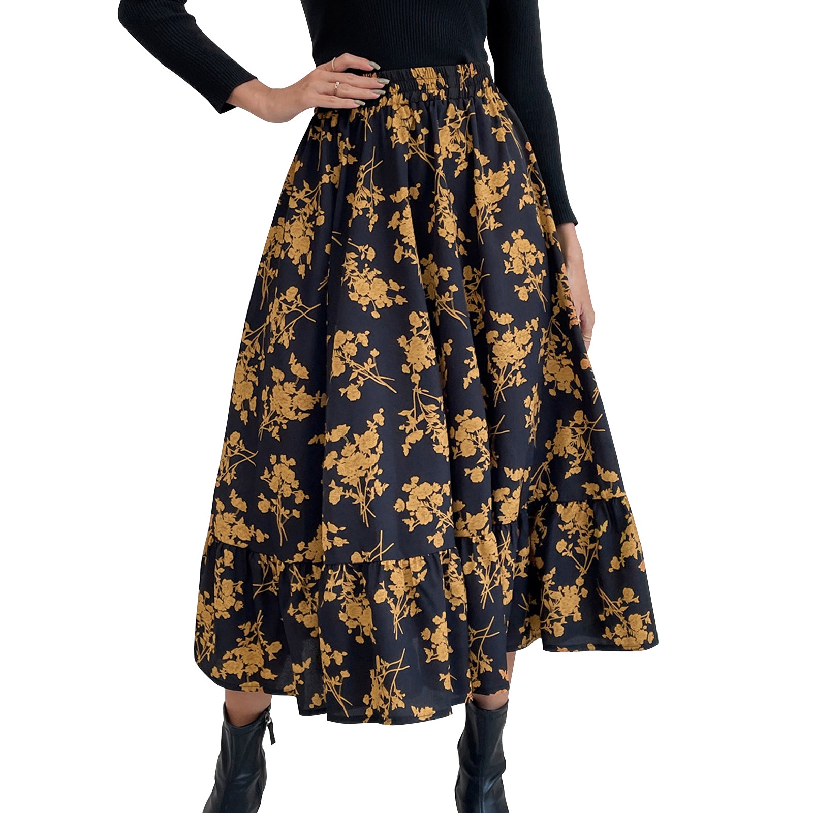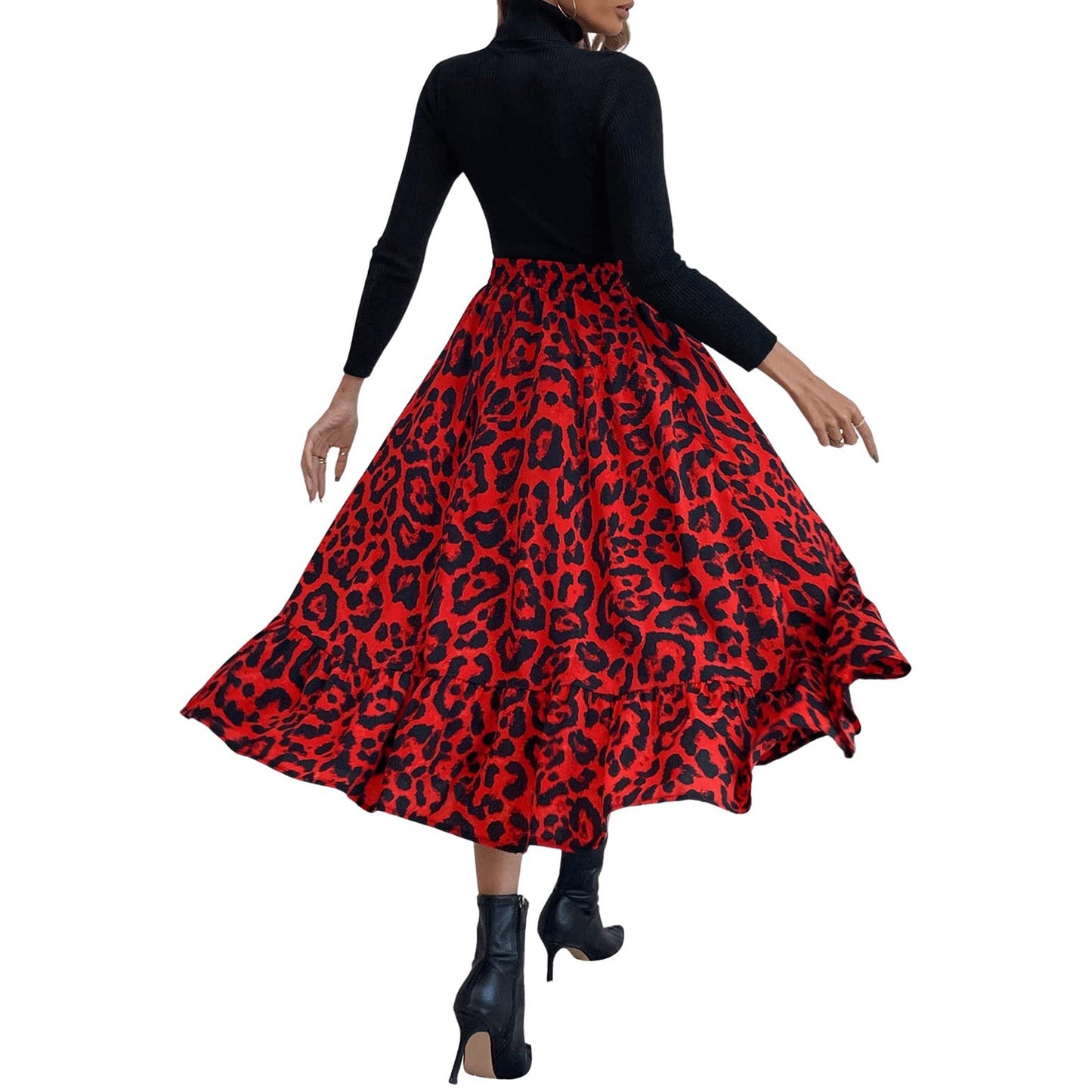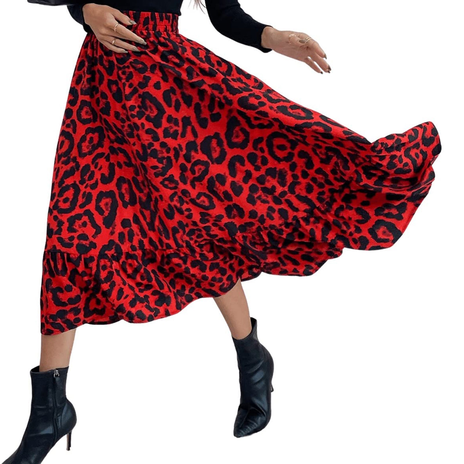 Lindíssimas saias estampadas midi, bem rodadas ou godê, de cintura alta e babados na bainha. Elástico na cintura ajuda a ajuste perfeito. Estampas animal print oncinha nas cores marrom e vermelho e estampa preta floral combinar perfeitamente com outono e inverno.