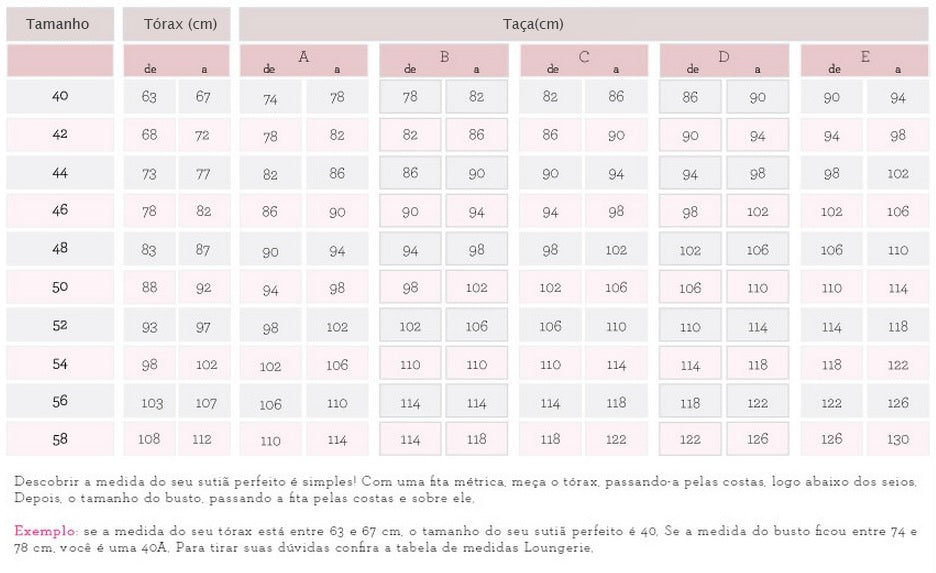 Sutiã para busto Plus Size, com tamanho até 50 e taças de B a F.