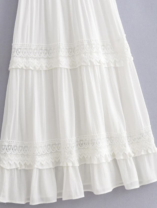 Vestido Boho Chic Midi Branco Rendas