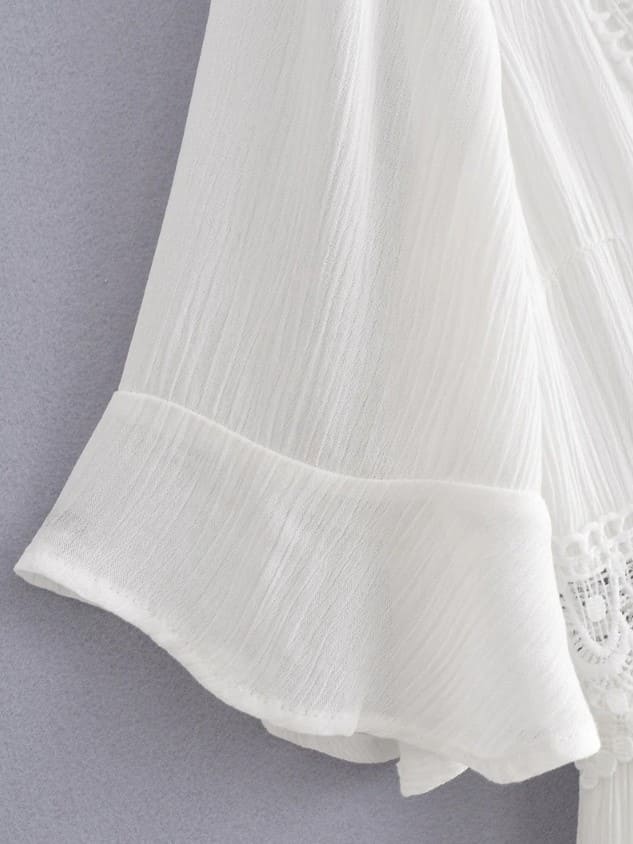 Lindíssimo vestido longo /midi branco com detalhes em rendas de manga curta. Transparências em renda na cintura chama maior atenção, tanto como decote profundo em v na frete e nas costas.