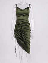 Vestido de Festa de Cetim Midi Fenda c/Amarração