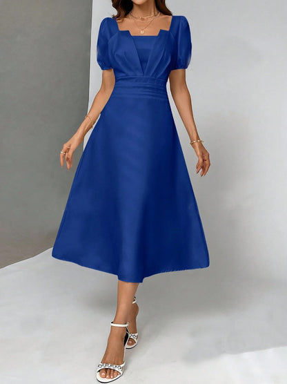 Lindíssimo vestido de festa formal estilo Retrô, altura midi. O maior charme do vestido fica por conta de corte alfaiataria acinturado, com dobras no busto e na cintura, deixando o look mais romântico. Manga curta com tecido fresco combinam com meia-estação e verão.