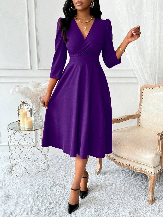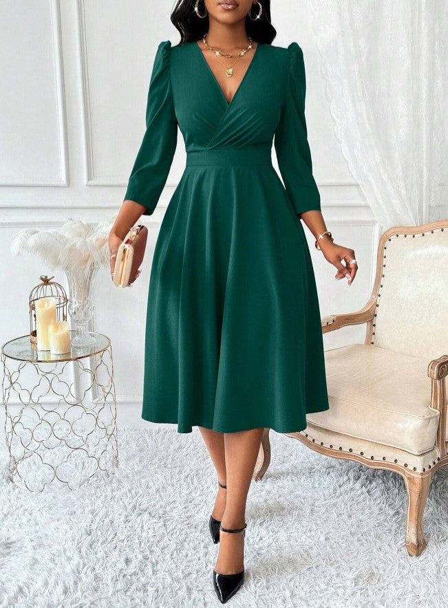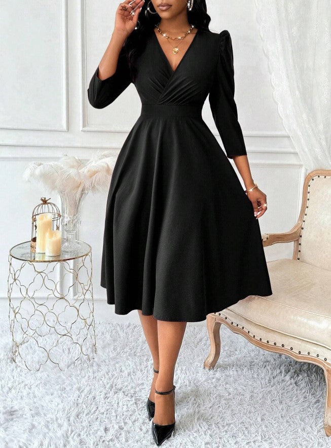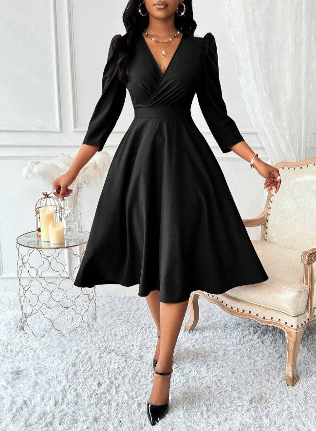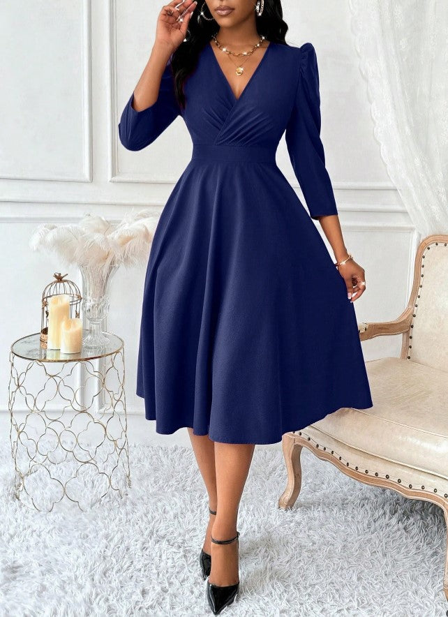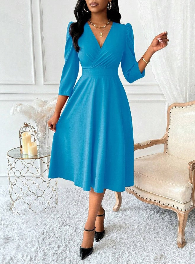 Lindíssimo Vestido altura Midi estilo Vintage , acinturado com saia godê e Manga 3/4. Sofisticado estilo minimalista com design retrô, torna o look perfeito tanto para dia a dia, como para look festa, coquetel ou eventos sociais mais sofisticados.