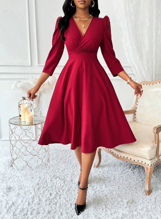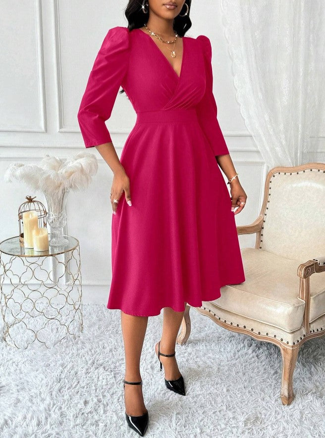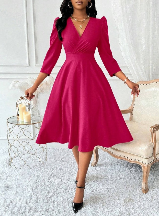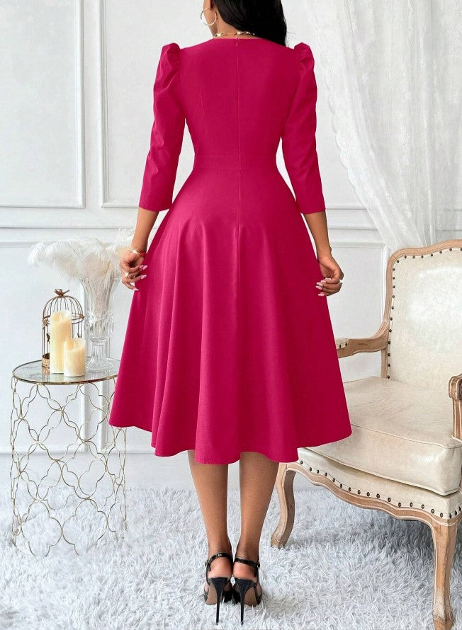 Vestido de Festa Midi Vintage Rodado Manga 3/4